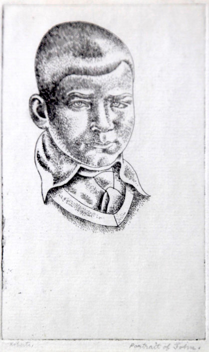 AN ENGLISH CUBISTWILLIAM ROBERTS:John + studyIllustration © The Estate of John David Roberts. Catalogue information based on the catalogue raisonné by David Cleall. For this and full details of the exhibitions cited, see the links below. Any auction prices quoted may not include all fees and taxes, such as VAT and Artist's Resale Right charges. ![]() John study for etching, c.1925 (date queried in National Portrait Gallery 1984 catalogue: 'John [b. 1919] may actually have been a year or two older than this dating would allow'). Signed and inscribed 'John' Pencil, 11.7 cm x 7 cm PROVENANCE: Estate of John David Roberts (held in Tate store, 2014) EXHIBITION HISTORY: National Portrait Gallery 1984 * ![]() ![]() ![]() John, c.1925 (date queried in National Portrait Gallery 1984 catalogue) Etching, 14.0 cm x 8.3 cm (Click on the lower images to enlarge.) PROVENANCE: first impression owned by Jeffrey Judelson > ? (by descent, 2023) > Roseberys London 18 Feb. 2026 (estimate £300£500); two impressions from the estate of John David Roberts held in Tate store, 2014, one inscribed 'Portrait of John' EXHIBITION HISTORY: Hamet Gallery 1971 (as The Artists' [sic] Son), Gillian Jason Gallery 1993 (as Portrait of John and dated c.1928) Home page | Chronology | Bibliography | Collections | Exhibitions News | Gallery | Auction results | The artists house | Contact List of works illustrated on the site Catalogue raisonné: chronological | alphabetical |