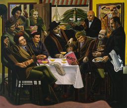 the other family portraits, the art critic of The Guardian put his finger on the problem:It seems extraordinary that so much painting over so many years should leave us so ignorant of the true nature of the people hiding behind the famous William Roberts manner, hovering elusively between the stylised and realistic 'Bobby was not a pub man; he got his copy from looking through the windows,' explained Sarah. She was referring here to his figure compositions, but her words apply equally to all the portraits. T. E. Lawrence's 'oyster' never worked its way out of its shell; rather it became deeply encrusted within it. The portraits of Stulik and Konody, together with all the other work done by Roberts in the 1920s, are interesting pieces, but when the props of kindliness were removed he faltered. Diffidence, a propensity to take offence, artistic feuds such as the one with Sir John Rothenstein at the Tate when they muddle the eye do not make for the best portraiture. The finest portraits are those in which the painter gives himself over completely to what lies before his eyes and does not allow his own personality to interfere with the evidence. In my opinion, the prerequisite for a successful portrait is a fascination with, even a love, of people. In addition, the artist's active imagination and analytical mind are essentials, The greatest portraits have a universality about them, and in twentieth-century Britain I believe that the portraits painted by Graham Sutherland and Maggie Hambling fall into this category. Their vision is fresh, filled with wonder and inquiry linking them to a long line of artists Titian, Rembrandt and Van Gogh among them who repeatedly grappled with the complexities of the human psyche. Common to all of them is a perennial vitality and a permanent relevance. But let me not end on a negative note as far as William Roberts is concerned: his work will live on. His portraits of the 1920s including those of Sarah and the portrait of John Maynard Keynes and Lydia Lopokova are distinguished, and, in the words of his obituarist in The Times, his reputation as a portraitist is 'deservedly high'. Home page | Chronology | Bibliography | Collections | Exhibitions News | Gallery | Auction results | The artists house | Contact List of works illustrated on the site Catalogue raisonné: chronological | alphabetical |