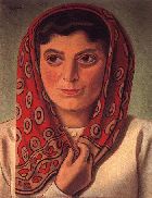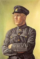 I now want to turn to some of the family portraits and to look briefly at how the artist saw himself and his wife, Sarah. The photograph above on the left shows how Sarah Kramer looked when they first met she was aged fifteen and that on the right Roberts as a gunner in the Royal Field Artillery during the Great War. In 1984 the National Portrait Gallery mounted a large exhibition of these portraits 'An Artist and his Family' so I do not want to cover the same ground again. However, I will show you a few of these portraits so that I can go on to relate them to the commissioned portraits and thereby draw some conclusions from all this about Roberts's achievements in this field. |